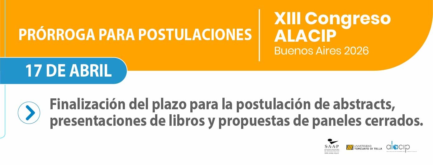 XIII Congreso Latinoamericano de Ciencia Política ALACIP 2026 en su agenda! 21 al 24 de julio 2026, la Ciudad de Buenos Aires, en la @univditella , será sede del encuentro académico más … [Leer Más...]