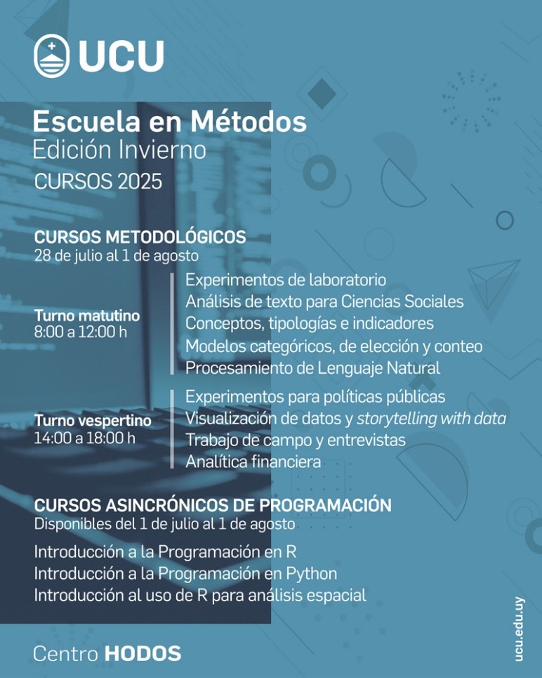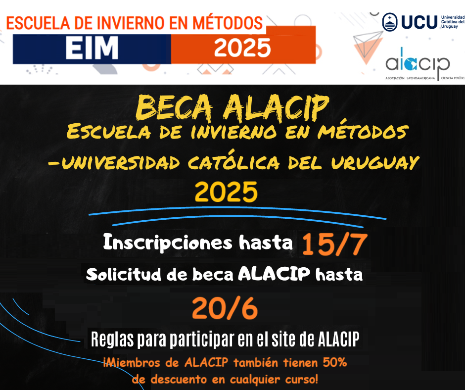 ALACIP anuncia el llamado para el otorgamiento de una beca de movilidad para realizar dos cursos presenciales en la Escuela de Invierno en Métodos 2025, organizada por el Departamento de Ciencia Sociales de la Universidad Católica del Uruguay.
