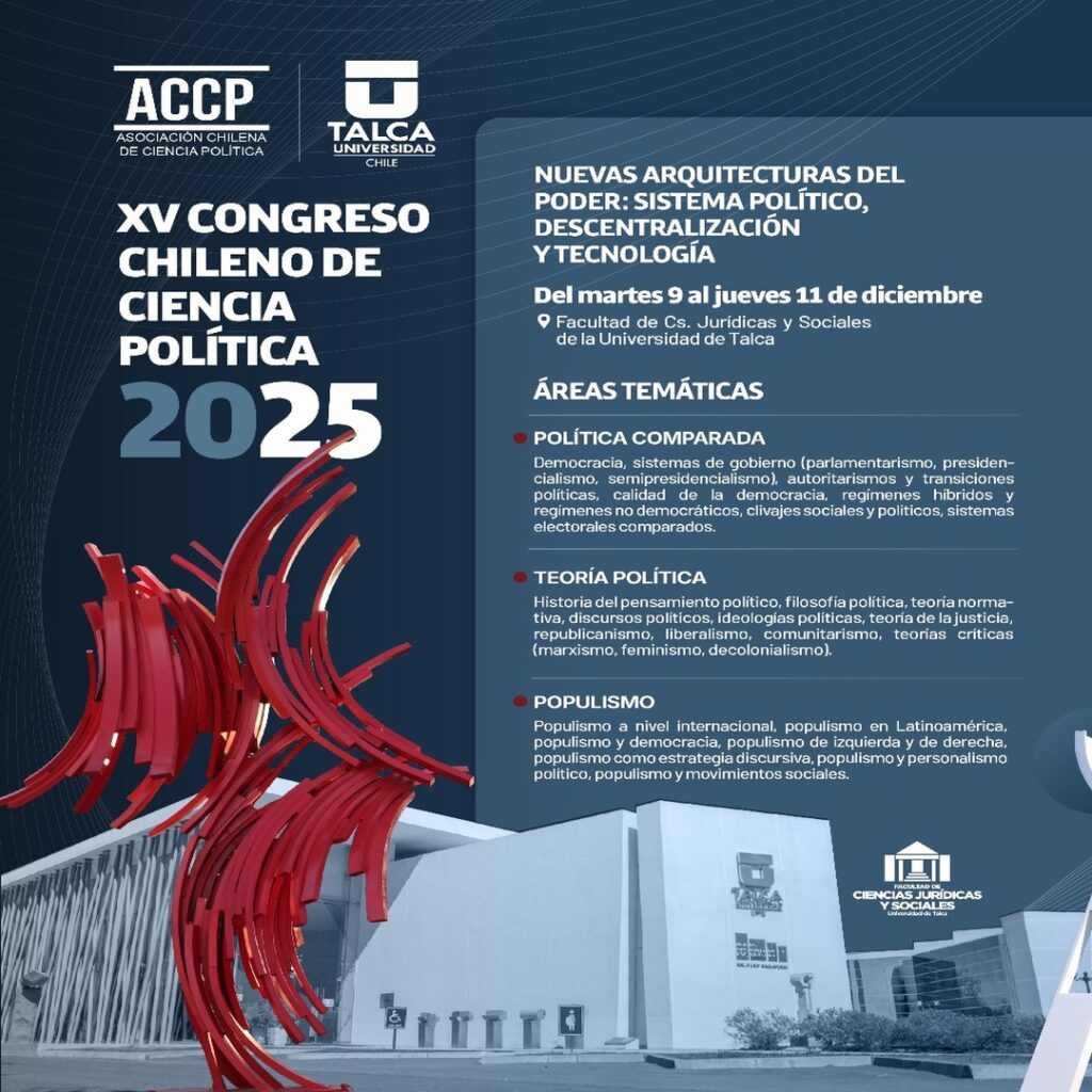 Del 9 al 11 de diciembre se realizará el XV Congreso Chileno de Ciencia Política en la Facultad de Ciencias Jurídicas y Sociales de la Universidad de Talca.