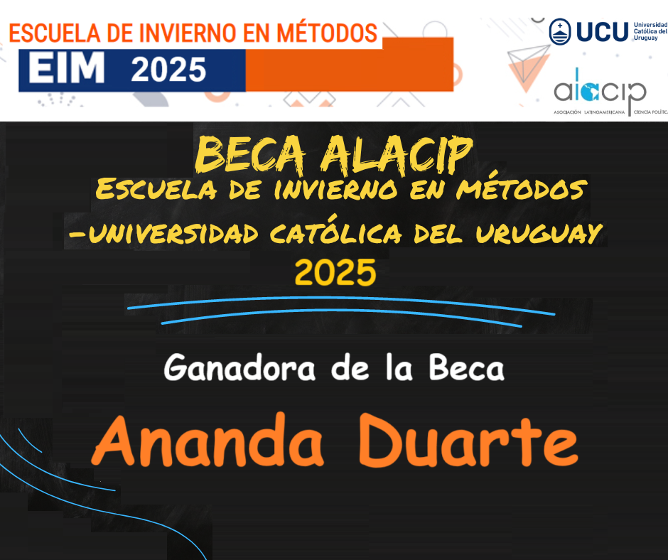 La ganadora de la Beca ALACIP para la Escuela de Invierno en Métodos 2025, organizada por el Departamento de Ciencia Sociales de la Universidad Católica del Uruguay, es Ananda Ridart.